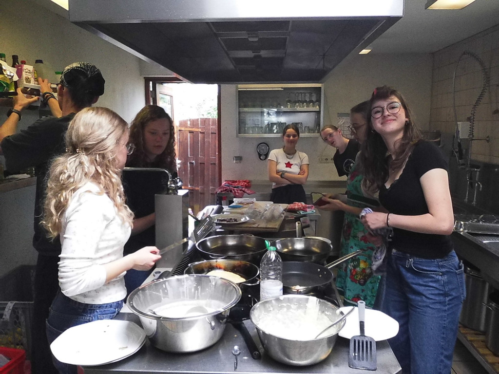 Workshops durften auch nicht fehlen, und es gab davon eine Menge, wie zum Beispiel Bänder knüpfen, Fußball, Musik und vieles mehr, zu denen die Teilnehmenden hinkonnten. Während der freien Zeit wurde oft Tischtennis gespielt oder einfach beieinandergesessen und geredet. In der Nähe unseres Hauses gab es eine Stadt, Lemmer. Dort waren wir insgesamt dreimal. In Lemmer gab es einiges, was man machen konnte: Egal ob baden im Ijsselmeer, bummeln in der Stadt oder ein kleiner Trip zum örtlichen McDonalds, es war für jeden etwas dabei.