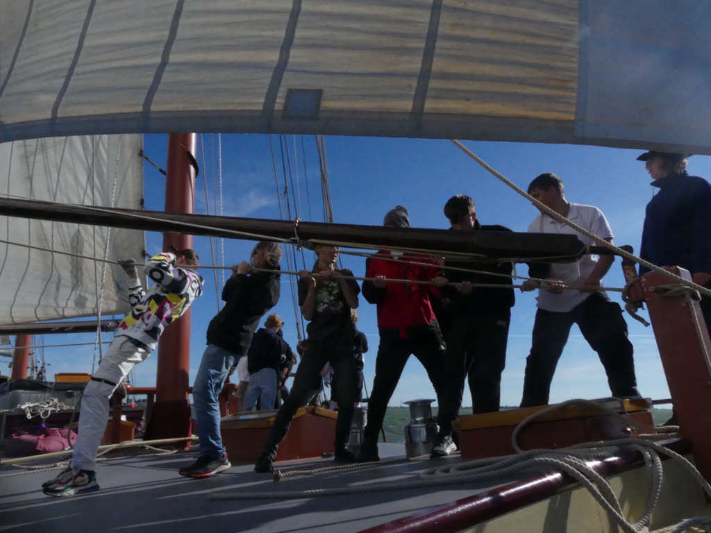 In der Mitte der Freizeit kam dann der Höhepunkt, auf welchen wir uns alle schon lang gefreut hatten: Segeln. Mit der Hilfe von Nico und Elena segelten wir übers Wochenende. Dabei wurden wir als Gruppe öfters zur Hilfe gerufen um die Segel zu hissen und falls man nett fragte, durfte man auch mal das Boot steuern. An einem der letzten Tage wurde auf einer großen Kinoleinwand noch das Leben des Brian von Monty Python geschaut und dazu selbstgemachte Pizza gegessen.